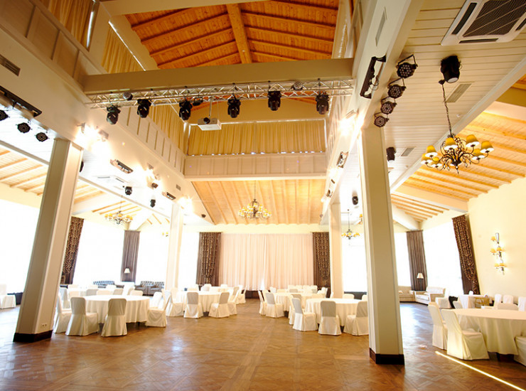 Современный и просторный зал с высокими потолками и большими панорамными окнами. Зал выполнен в архитектурном стиле лофт-фьюжн (loft fusion), имеет собственную открытую террасу с великолепным видом на территорию Клуба. Зал находится в новом корпусе и имеет отдельный вход.