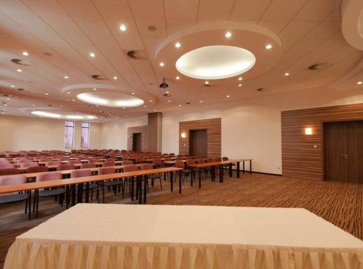 Большой конференц-зал с кондиционерами идеально подходит для проведения крупных мероприятий, таких как балы, конференции, приемы, вечеринки, выставки и т. д. Вместимость зала ограничена макс. 300 человек. Большой конференц-зал можно разделить на две части. Техническое оборудование отвечает современным требованиям и имеет множество вариантов освещения, помимо естественного освещения.