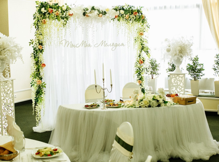 Светлый и торжественный зал подойдет для проведения любого банкета - свадьба, корпоратив, День рождения, выпускной и т.д.