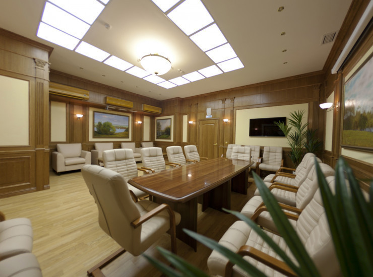Зал расположен на 2 этаже, площадь 40 кв.м, вместимость 30 гостей. Оснащен аудио-, визуальным и другим оборудованием.