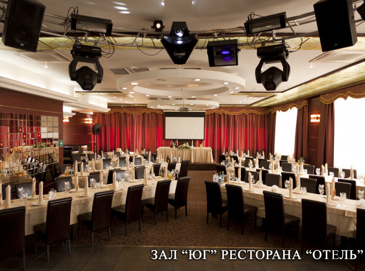 Зал расположен на 2 этаже, площадь 249 кв.м, вместимость 200 гостей. Оснащен аудио-, визуальным и другим оборудованием.