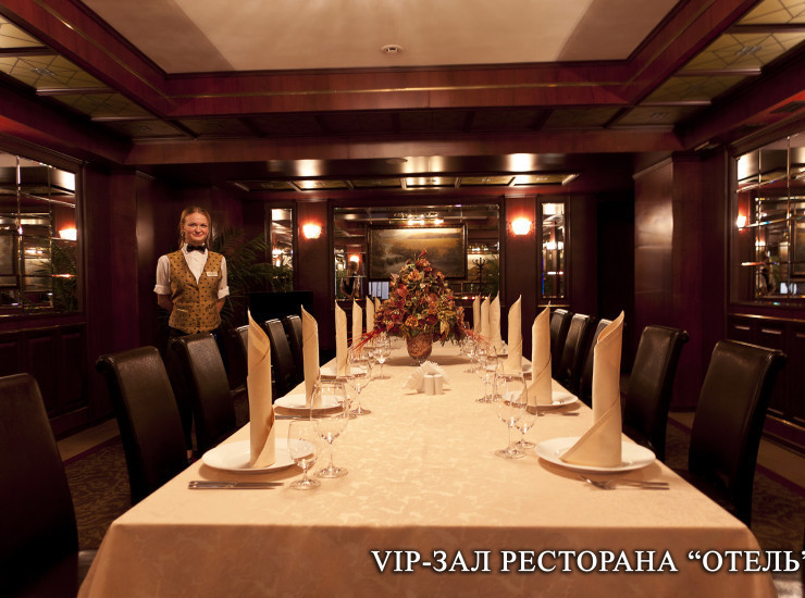 Ресторан готов принять 230 гостей. В меню - русская, европейская, японская, итальянская кухни. Меню а-ля карт. Изысканная винная карта. Банкетное и фуршетное меню. Выездное обслуживание.