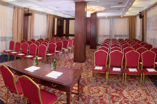 Зал площадью 200 м2 с уникальным техническим оснащением. Наличие системы синхронного перевода (6 языков). Большая зона для кофе-брейков, фуршетов.
