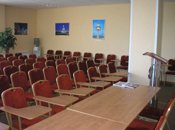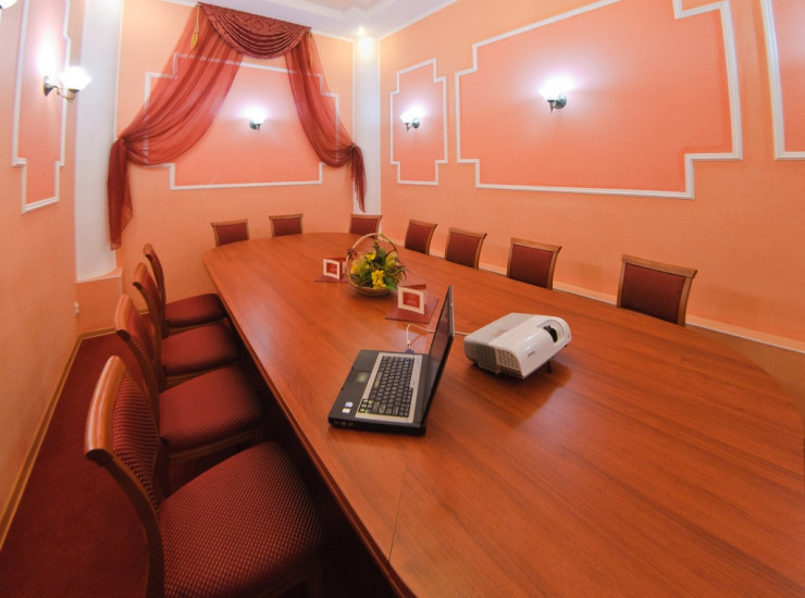 Площадь зала - 90 кв.м. Конференц-зал находится на пятом этаже. В зале созданы прекрасные условия для работы и организации бизнес-встреч. Вместимость до 35 человек.