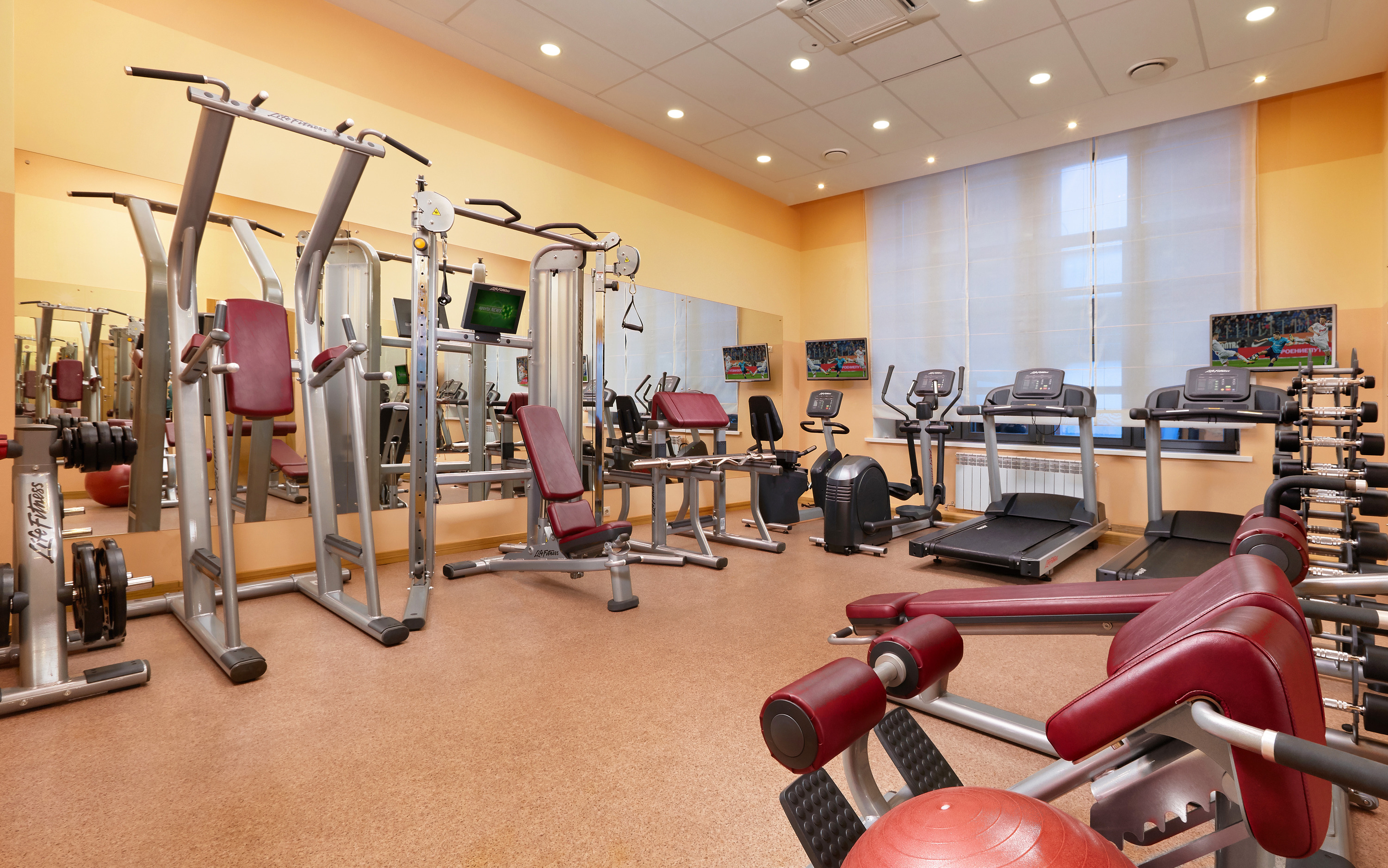 Большой выбор современного фитнес-оборудования.Беговые дорожки, велотренажеры, степпер, кардио- и силовые тренажеры лучшего американского производителя Life Fitnes.