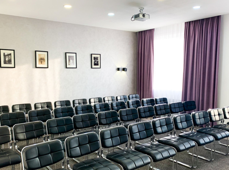 Многофункциональный конференц-зал отеля оснащен профессиональным оборудованием для деловых встреч. Он рассчитан на 40 посадочных мест. К услугам гостей: