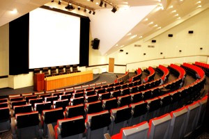 Общая площадь – 350 кв.м, рассчитан на 200 мест. Кондиционируемое помещение без естественного освещения. Зал оснащен конгресс-системой фирмы Philips (конференц-связь, радио-микрофоны, система синхронного перевода, мультимедийный проектор, проекционный экран площадью 36 кв.м, плазменная панель в президиуме для синхронного просмотра презентаций с мультимедийного проектора, аудио-видео система Dolby Surround, театральные прожектора). Услуга высокоскоростного беспроводного доступа к сети Интернет по технологии Wi-Fi. Места в зрительном зале снабжены приспособлениями для письма.