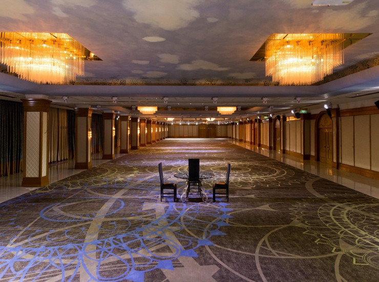 Grand Hall (секции A+B+C): площадь 920 кв.м, вмещает до 1000 человек. A+B: площадь 680 кв.м, вмещает до 850 человек. B+C: площадь 490 кв.м, вмещает до 600 человек. Hall A: площадь 430 кв.м, вмещает до 500 человек. Hall B: площадь 250 кв.м, вмещает до 250 человек. Hall C: площадь 240 кв.м, вмещает до 250 человек.