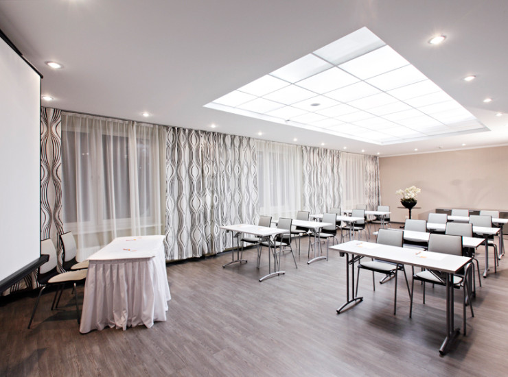 Выбрав организовать конференцию в элегантном зале “City”, Вы получите в свое распоряжение также зону отдыха, бар и летнюю террасу. Помещения особенно подходят для конференций, численность участников которых до 110 лиц. Стол для кофейной паузы по Вашему выбору сервируется на барной стойке, в зоне отдыха или в летний сезон – на террасе.