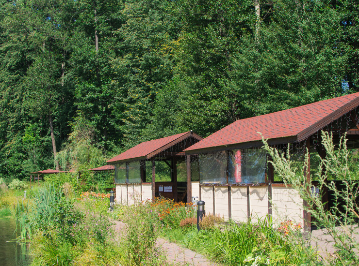 Уютные беседки на берегу пруда подойдут для семейного праздника на свежем воздухе или дружеской барбекю-вечеринки. К Вашим услугам 5 малых беседок вместимостью до 6 человек и 2 большие беседки, вместимостью до 18 человек.