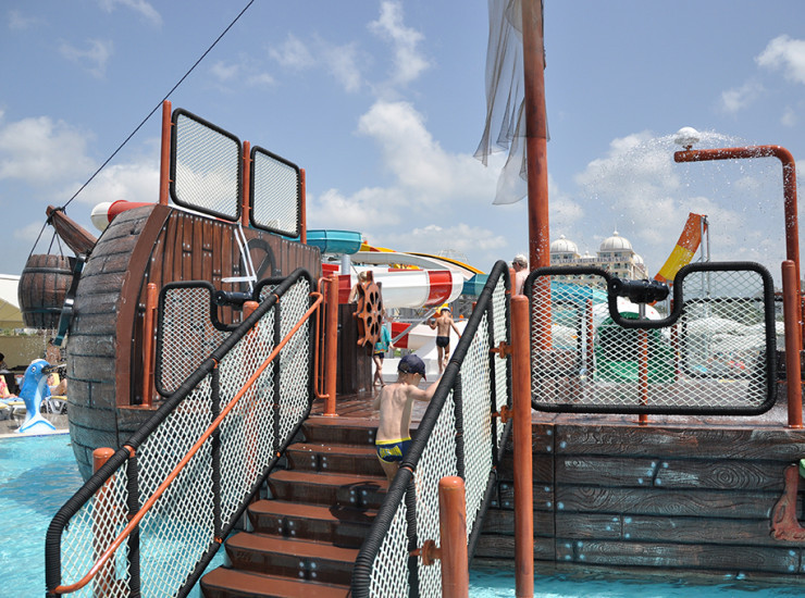 Горки для взрослых и пиратский корабль для детей. Часы работы с 10:00 до 12:00 и с 15:00 до 17:00.