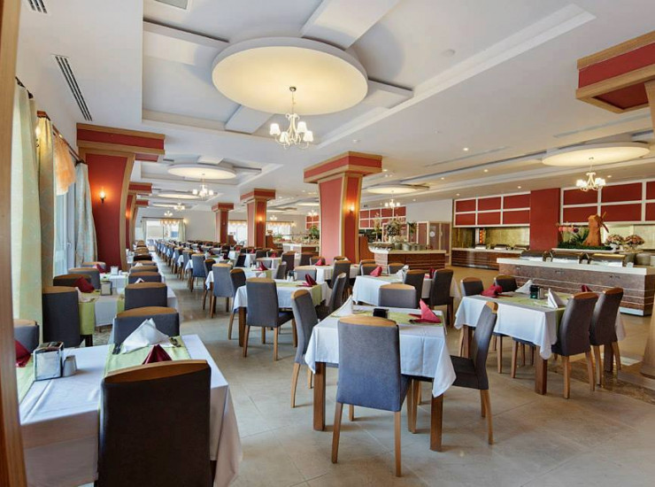 Основной ресторан предлагает гостям отеля блюда традиционной турецкой и европейской кухни - шведский стол. Крытая секция ресторана рассчитана на 750 чел, открытая терраса на 250 чел. Завтрак 07:00 - 10:00. Поздний завтрак 10:00 - 11:00. Обед 12:30 - 14:00. Ужин 19:00 - 21:00.