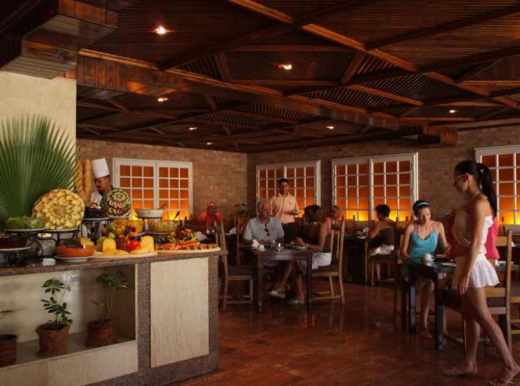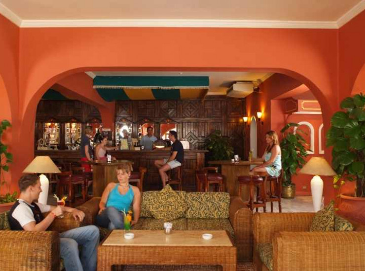 The bar is located in the hotel lobby. The menu includes light soft drinks and local alcoholic drinks.
