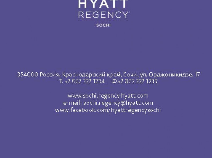 Отель Хаятт Ридженси Сочи предлагает отличные конференц-возможности прямо в центре города Сочи. Стильный дизайнерский интерьер конференц-залов не оставит равнодушным ни одного Вашего гостя. Мы с радостью поможем Вам в организации мероприятия и сделаем так, чтобы оно прошло идеально.