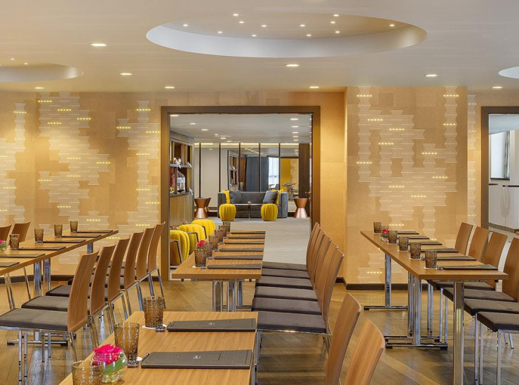 Переговоры на уровне правления в роскошном спокойствии Отеля Кемпински Корвинус Будапешт, рядом с бизнес-центром. Зал для заседаний Room Five площадью более 30 м² с дневным освещением идеально подходит для небольших встреч до 8-10 человек.