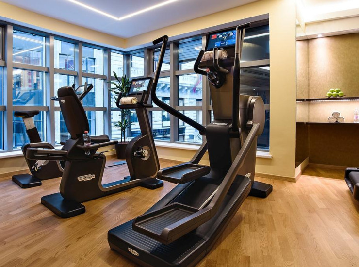 Новое напольное и настенное покрытие, а также новые осветительные приборы придают фитнес-центру отеля Kempinski Corvinus сияющий вид и ощущение простора, а сам зал оборудован ультрасовременными моделями тренажеров Artis от компании Technogym.
