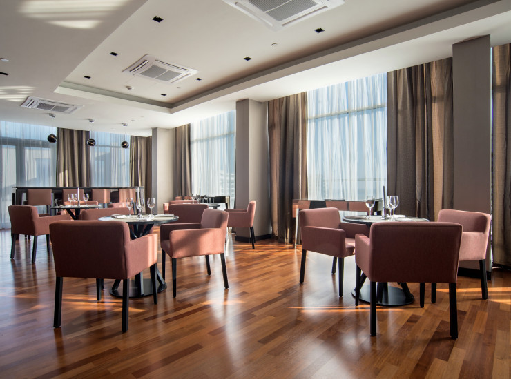 Панорамный ресторан Библиотека - это атмосферное заведение, расположенное на 7 этаже отеля Имеретинский, с выходом на просторную террасу и панорамным видом на Черноморское побережье, горы и Олимпийский парк.