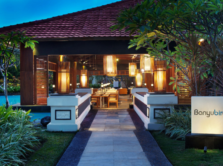 Ресторан Banyubiru расположился среди голубых логун утопающих в тропических садах. Ресторан открыт на завтрак и ужин.