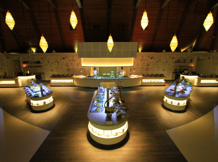 Вы наслаждаетесь бескрайними видами на океан, ужиная сочными лобстерами и тигровыми креветками. Острые специи и соль. Местные Мальдивские ароматы, эта кулинарная мудрость, как глубина Индийского океана. Все открывается вам, находящемуся на открытом воздухе, ужинающему в компании друзей или семьи на песчаном пляже или на возвышенности над водой. -