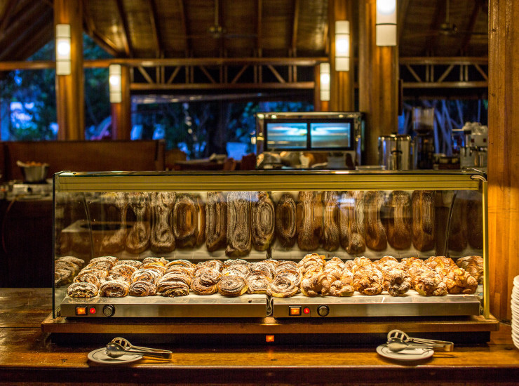 On the sunset side of the island, the Coffee Shop offers a continental buffet breakfast as well as afternoon tea .