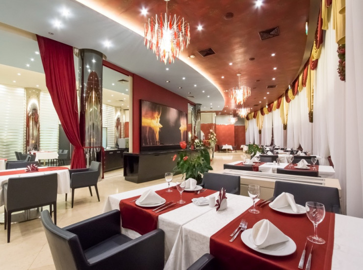 Классический ресторан Опера, дизайн которого навеян образами лучших театров мира, превратит любой ужин в запоминающийся праздник.Ресторан ОпераДля Вас - кулинарные шедевры татарской, итальянской, мексиканской, японской, французской кухни от шеф-повара.От городской суеты и оживленного центра ресторан отделен лишь прозрачной стеклянной преградой - большие панорамные окна ресторана выходят на казанский Кремль. Вечером вид из окон просто потрясает воображение.Завтрак в ресторане Опера ("шведский стол" с 7:00 до 11:00) включен в стоимость проживания в отеле. К ресторану прилегает великолепная терасса, где в теплую погоду возможно насладиться приятным ужином.