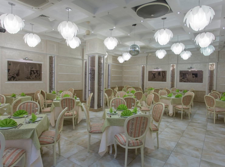Удобный и просторный зал позволит вместить желающих независимо от масштабов Вашего мероприятия: будь то скромный семейный праздник или же шикарный банкет.
