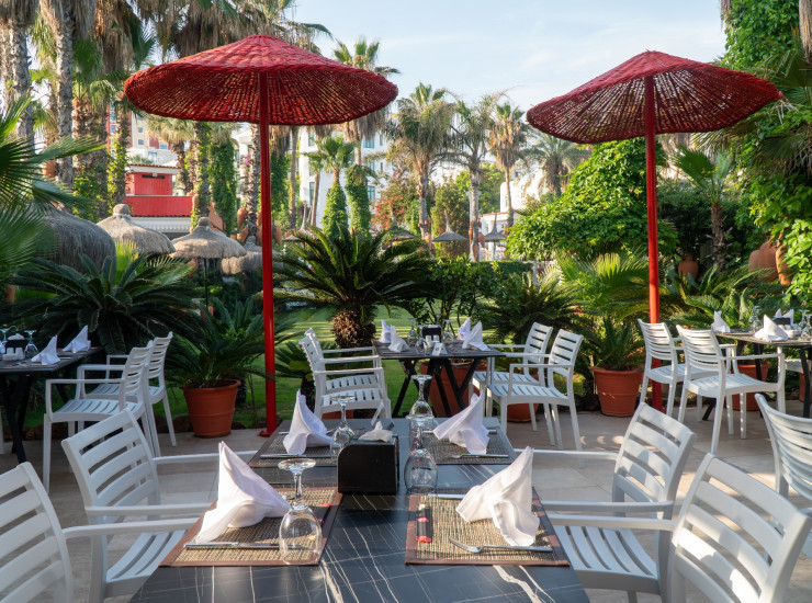 В нашем баре на пляже, с которого открывается очаровательный вид на средиземное море, множество вкусных местных и импортных напитков, алкогольных или безалкогольных, добавят удовольствия в каждый момент вашего отдыха.