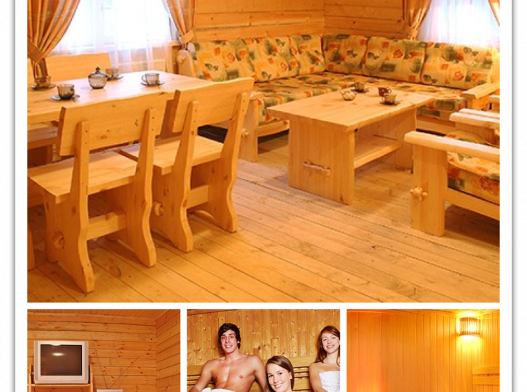 небольшие домики на 4-х человек. В стоимость посещения такой парной входит полный комплект аксессуаров: простыни и полотенца.