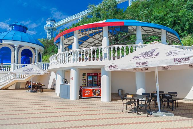 Гости на пляже всегда могут освежиться прохладительными напитками, смузи и свежими фруктами. А детей можно побаловать сладкой ватой и мороженым.
