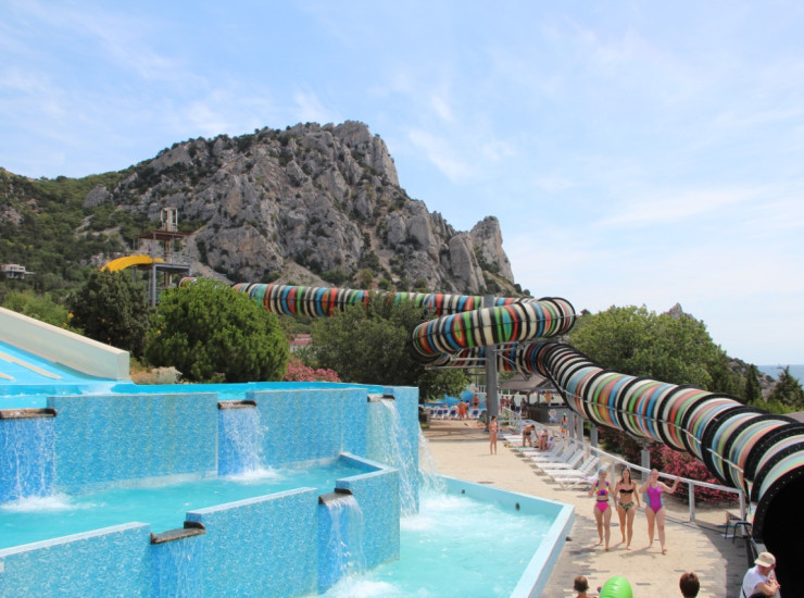 Единственный аквапарк в Крыму с кристаллически чистой морской водой из Черного моря находится в самом экзотическом месте - у побережья моря, среди скал, леса, и можжевеловой рощи. В аквапарке расположено 19 аттракционов, 7 бассейнов с МОРСКОЙ ВОДОЙ, танцпол в бассейне, VIP-зона, WI-FI, детский развлекательный комплекс с аниматорами, а также кафе, бары, рестораны и огромное количество фотозон.