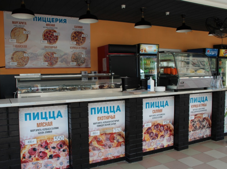 Пиццерия расположена по правую сторону от входа в аквапарк и предлагает итальянскую пиццу, картофель фри, бургеры, салатики, освежающие коктейли и многое другое.