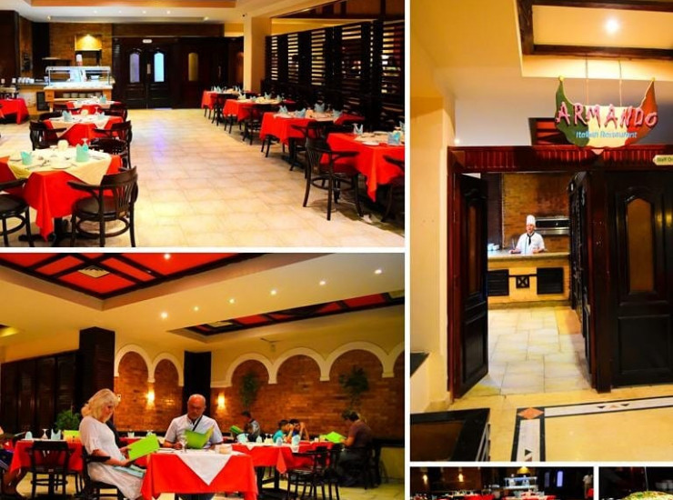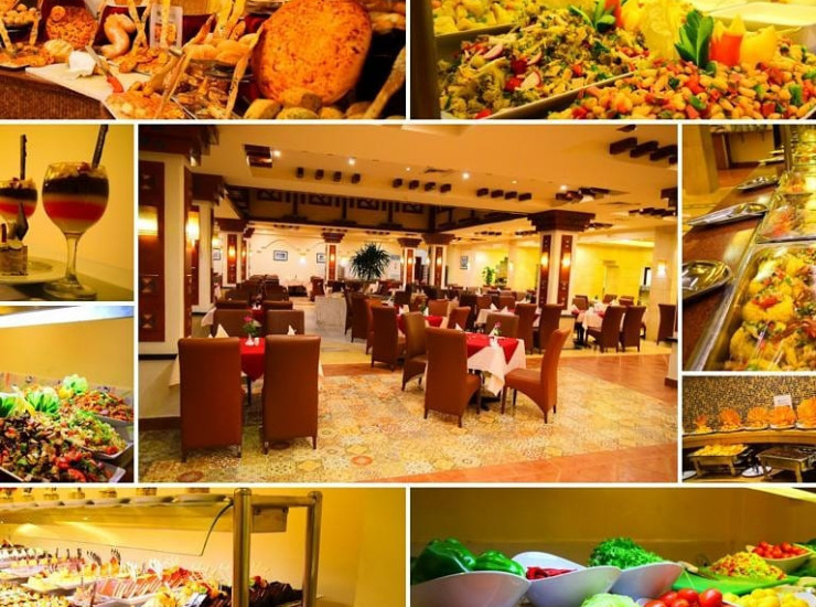 Уютный ресторан на территории отеля находится напротив ресепшн возле первого бассейна и рассчитан на 200 мест.Предлагает алкогольные и безалкогольные напитки,а также многообразие блюд местной и международной кухни.Шведский стол.В ресторане проходят завтрак и обед ,а также чаепития на протяжении всего дня.