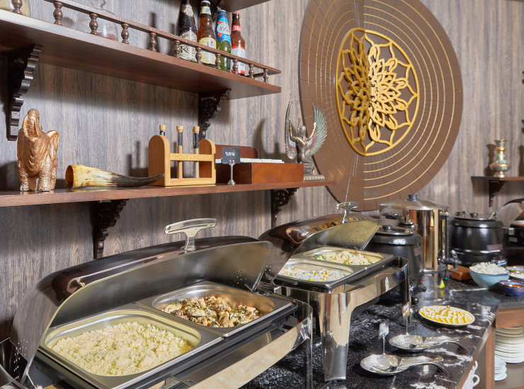 В ресторане сервируются завтраки и ужины с большим ассортиментом горячих блюд, закусок, свежей выпечки, молочных продуктов, напитков, а повар ресторана приготовит любимое утреннее блюдо, яичницу или омлет с различными добавками, специально для вас. Плотный и вкусный завтрак зарядят Вас отличным настроением на предстоящий день. Финальный акцент добавит чашечка свежезаваренного кофе или ароматный чай. А сытный и правильный ужин восполнит Ваш организм всеми необходимыми ресурсами.