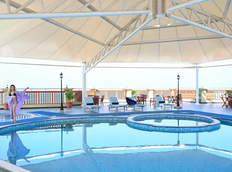 Погрузитесь в расслабление у нашего открытого бассейна идеального оазиса для отдыха после насыщенного дня, проведенного в Шардже. Отдохните на шезлонге, освежитесь или просто насладитесь безмятежной атмосферой в окружении пышной зелени. Будучи ведущим 4-звездочным отелем в Шардже , мы предлагаем гостям идеальные условия для стильного восстановления сил и омоложения.