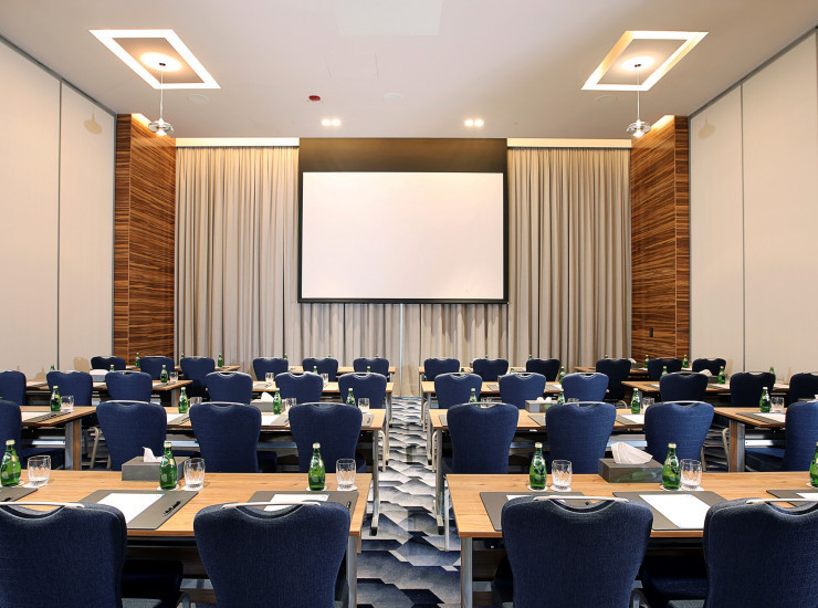 Зал Cosmopolitan Grand Ballroom площадью 250 квадратных метров без колонн с окнами от пола допотолка вмещает до 200 гостей. Он также делитсяна четыре звуконепроницаемых секции длянебольших мероприятий. Спроектированные по заказу конференц залы созданы для вашего комфорта, удобства иудолетворения самых разных запросов ипотребностей, будь то обсуждение за круглымстолом, презентация или тимбилдинг.