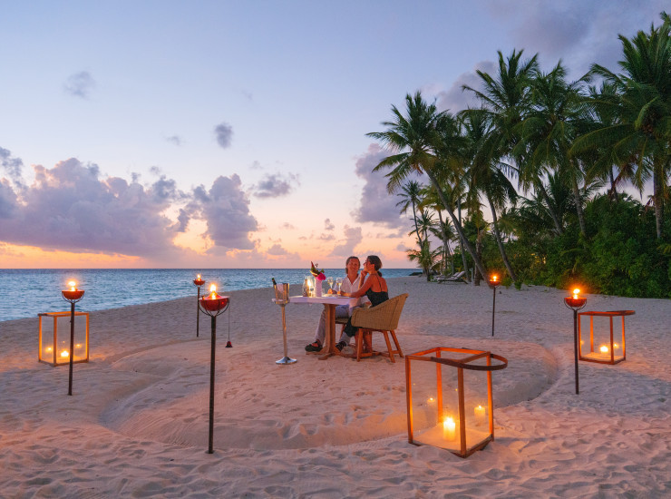 Насладитесь романтическим ужином на берегу океана и поднимите бокал игристого за этот прекрасный вечер. Забронируйте ужин на двоих под звездным небом.