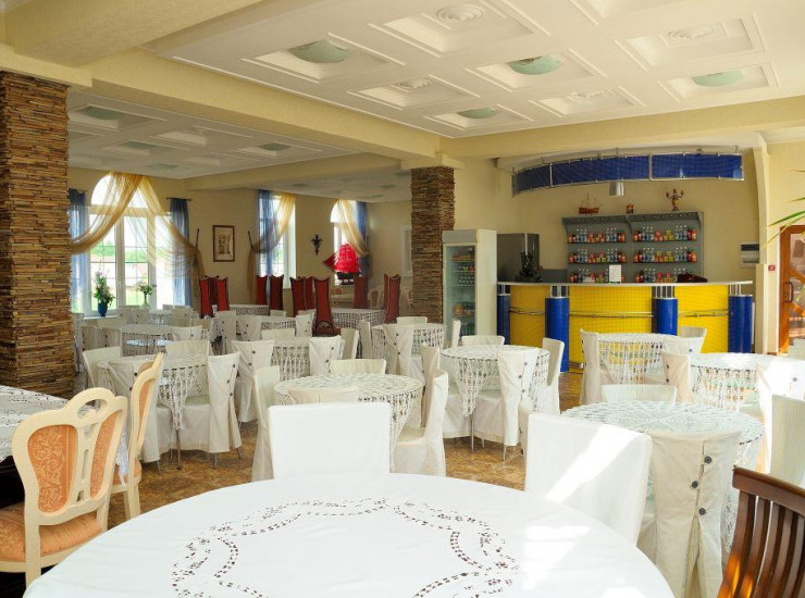 Ресторан работает в формате "шведского стола" по системе "Все включено". Там же есть бар промежуточного питания.