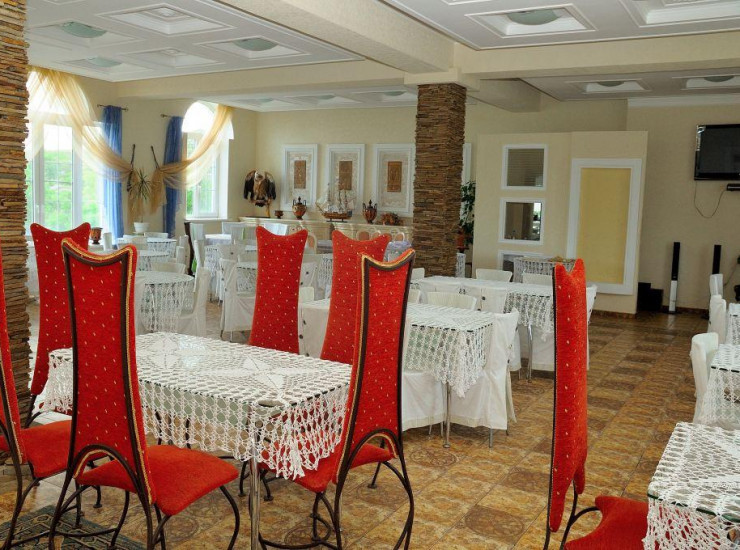 На территории отеля работает кафе-бар, где представлены в ассортименте: пицца, хот-доги, кондитерские изделия, сухие завтраки, молочная продукция (кефир, ряженка, молоко, йогурт), мороженое. Безалкогольные напитки: чай, кофе, вода, компот, прохладительные чаи.