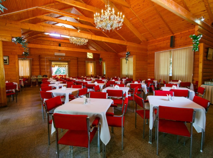 Здоровое и полезное трехразовое питание по системе «все включено», с горячими блюдами и свежей домашней выпечкой,множеством крымских фруктов и овощей. Грузинская, восточная, европейская, украинская, русская, татарская кухни удивят и порадуют своим изобилием любого гурмана. Все блюда готовятся нашими поварами по-домашнему, из продуктов произведенных и выращенных в Крыму.Кафе расположено в отдельно стоящем просторном кондиционируемом здании из экологически чистого деревянного сруба. Вместимость зала одновременно 100 человек.