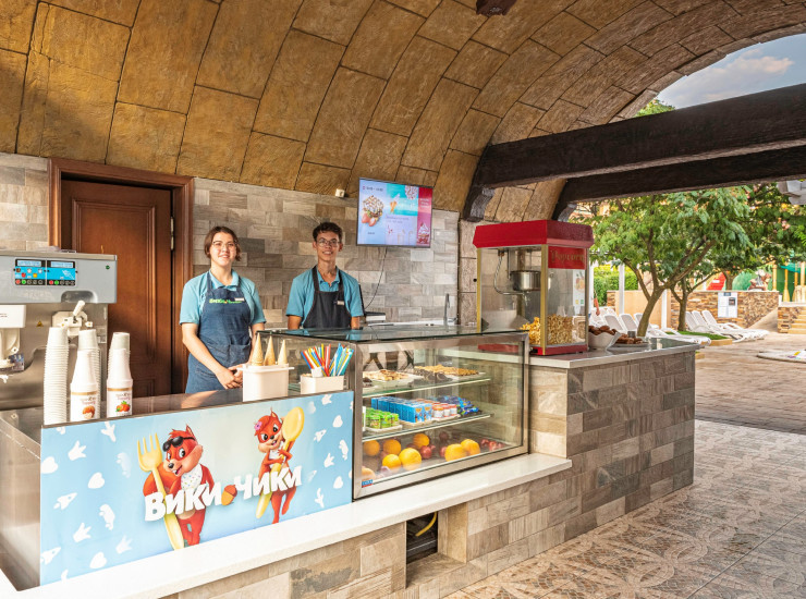 Снек-бар на пляже позволит отдыхать, не отвлекаясь на обеденный перерыв в основном ресторане, ведь здесь всегда найдётся, чем перекусить или даже полноценно пообедать.