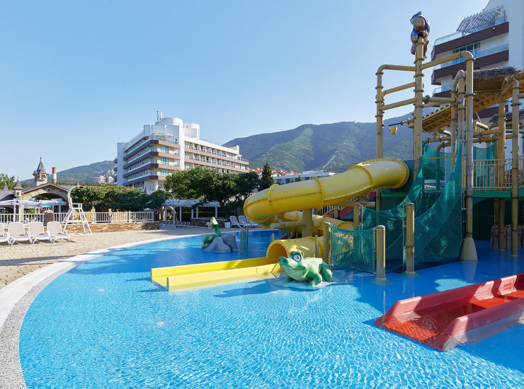 На территории Alean Family Resort & SPA Biarritz 4* расположен комплекс, состоящий из четырех бассейнов. Три из них подогреваемые, в них проходят анимационные активности, спортивные игры и работают водные горки.