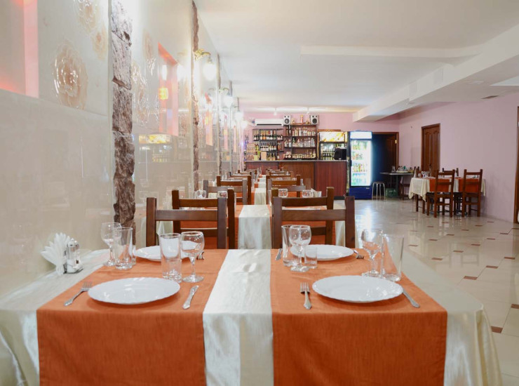 Наше кафе работает без обеда и выходных. Два зала открыты для посетителей в любое время суток. В малом зале (на 30 человек), который работает в формате кафе, гостям отеля предложат бесплатный легкий завтрак с утра. Вы также можете заказать более плотный и горячий завтрак по утреннему меню. А бармен предложит заварной кофе и широкий выбор ароматного чая.