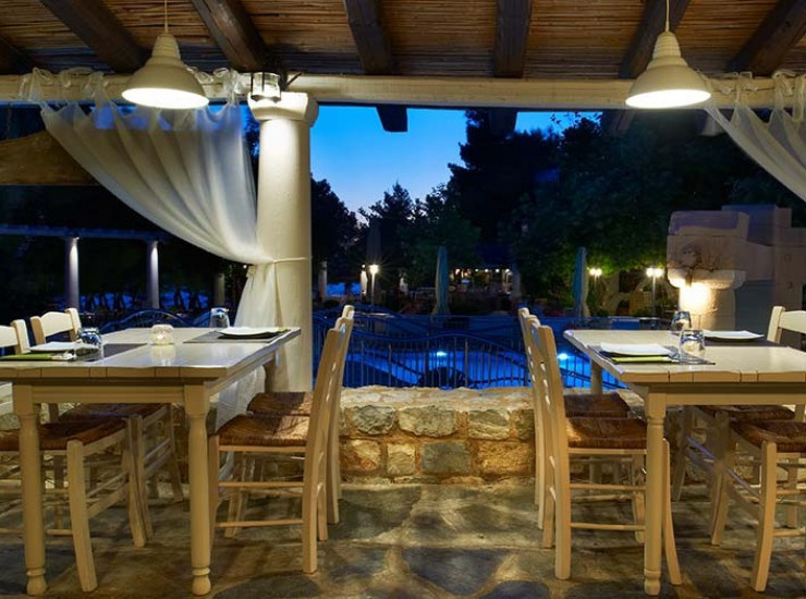 Расположенный у бассейна, ресторан предлагает более специализированный выбор греческой и средиземноморской кухни.