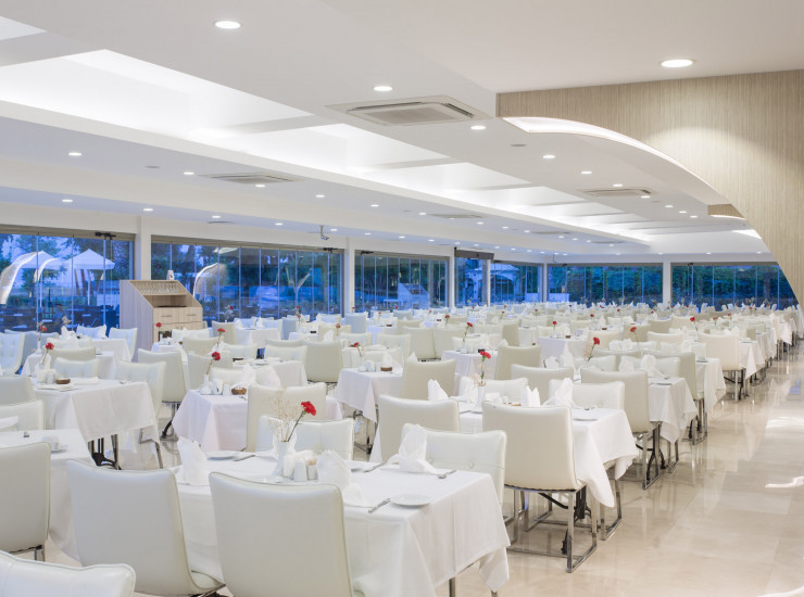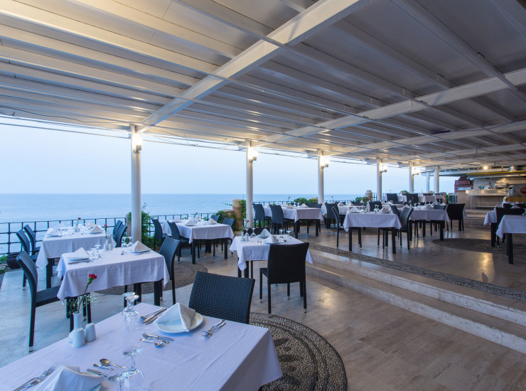 Главный ресторан отеля работает по системе шведский стол.Включены безалкогольный и алкогольные напитки местного производства. Импортные напитки в бутылках за дополнительную плату. Столы сервируются как в помещении так и снаружи возле бассейна.