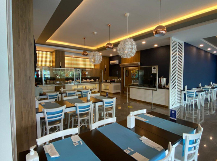 Наш ресторан расположен на террасе на первом этаже отеля и имеет закрытую и открытую зоны. Ресторан работает по принципу шведского стола, здесь Вы можете отведать блюда интернациональной и турецкой кухни.