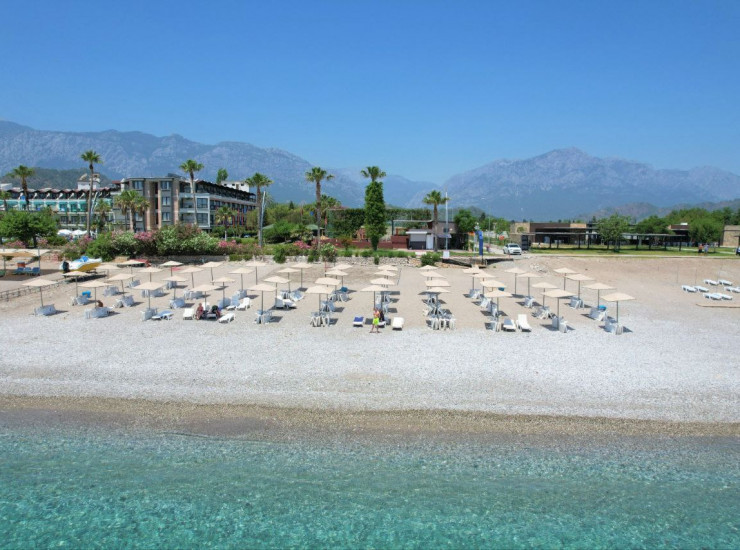 Собственный пляж расположен в 4 минутах ходьбы. Пляж мелкогалечный , вход море пологий, специальная обувь не требуется. Пляж оборудован шезлонгами, матрасами и зонтиками.