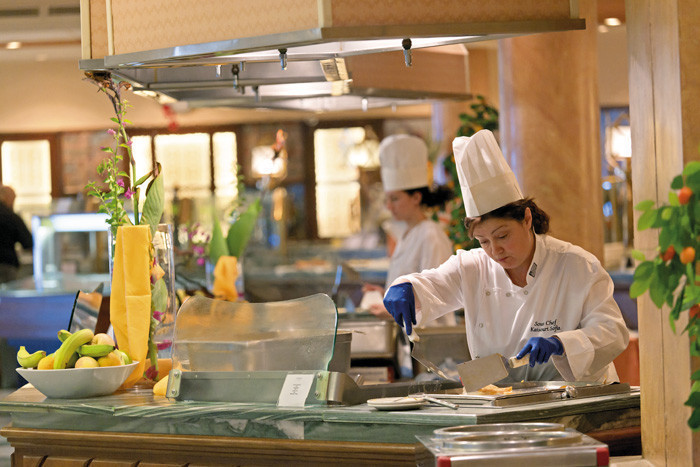 Насладитесь вкусными блюдами изобильного шведского стола на веранде ресторана Sympossio, откуда открывается завораживающий вид на Критское море.