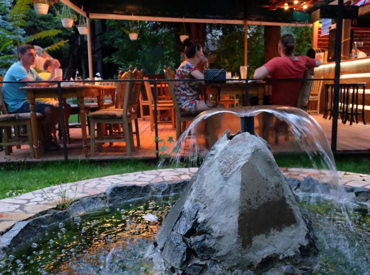 Крым, Ялта, Чайная горка-это то место, где расположился наш отель. Об этой части Ялты написано многое: и что это уникальный природный уголок крымской природы в самом центре Ялты, и об истории происхождения самого названия Чайная горка, берущего свое начало от привычки особ царской семьи пить чай в этой части Ялты после прогулок из Ливадийского дворца. Все это можно прочесть в путеводителях по Ялте. Все это особенно ярко и выразительно отражено в отеле Муссон, на зеленой тенистой территории которого произрастает уникальная Крымская флора: магнолия царица растительной природы Крыма, величественно возвышающаяся в центре небольшого парка, стройные кипарисы, инжир, артишок, кактусы, аукуба и начинающие свой рост пальмы. Уютный участок, окруженный зеленью и украшенный декоративным фонтаном и каскадным водопадом, дает возможность расслабиться и отдохнуть нашим гостям в прохладе и в окружении прекрасных ароматов после посещения знойного пляжа Черного моря или увлекательной экскурсии. Расслаблению непременно поможет бассейн с пресной водой и удобными лежаками, расставленными вокруг, а также уютный летний бар с прохладительными напитками и закусками, включая настоящую итальянскую пиццу. У нас гости могут поиграть в настольный теннис, принять сеанс массажа, вечером посмотреть на большом экране фильм или музыкальную программу в летнем кинотеатре, болеть за своих на чемпионате Европы по футболу. Все для победы любимой команды в ассортименте: пиво и различные снеки.
