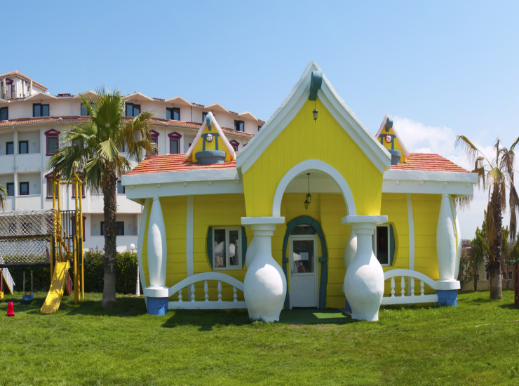 Для детей с 4 до 9 лет и работает утром с 10:00 до 12:30 и после обеда с 14:30 до 17:00 а также есть ежедневные детские дневные мероприятия такие как утренняя гимнастика, дартс, мини гольф, боулинг, мини баскет.