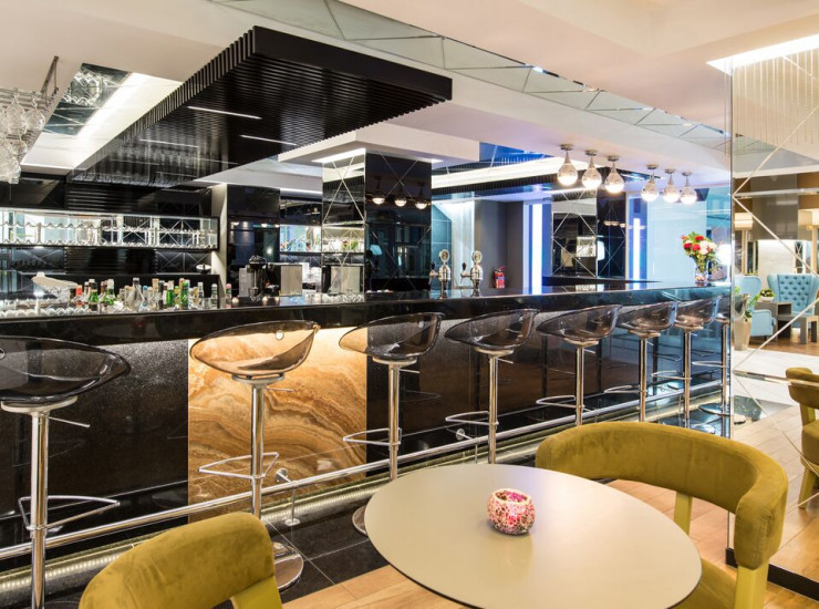 Бар, расположенный на главной площади отеля, предлагает большой выбор напитков. Это особое место встречи - здесь за коктейлем вы можете наслаждаться видом на море.